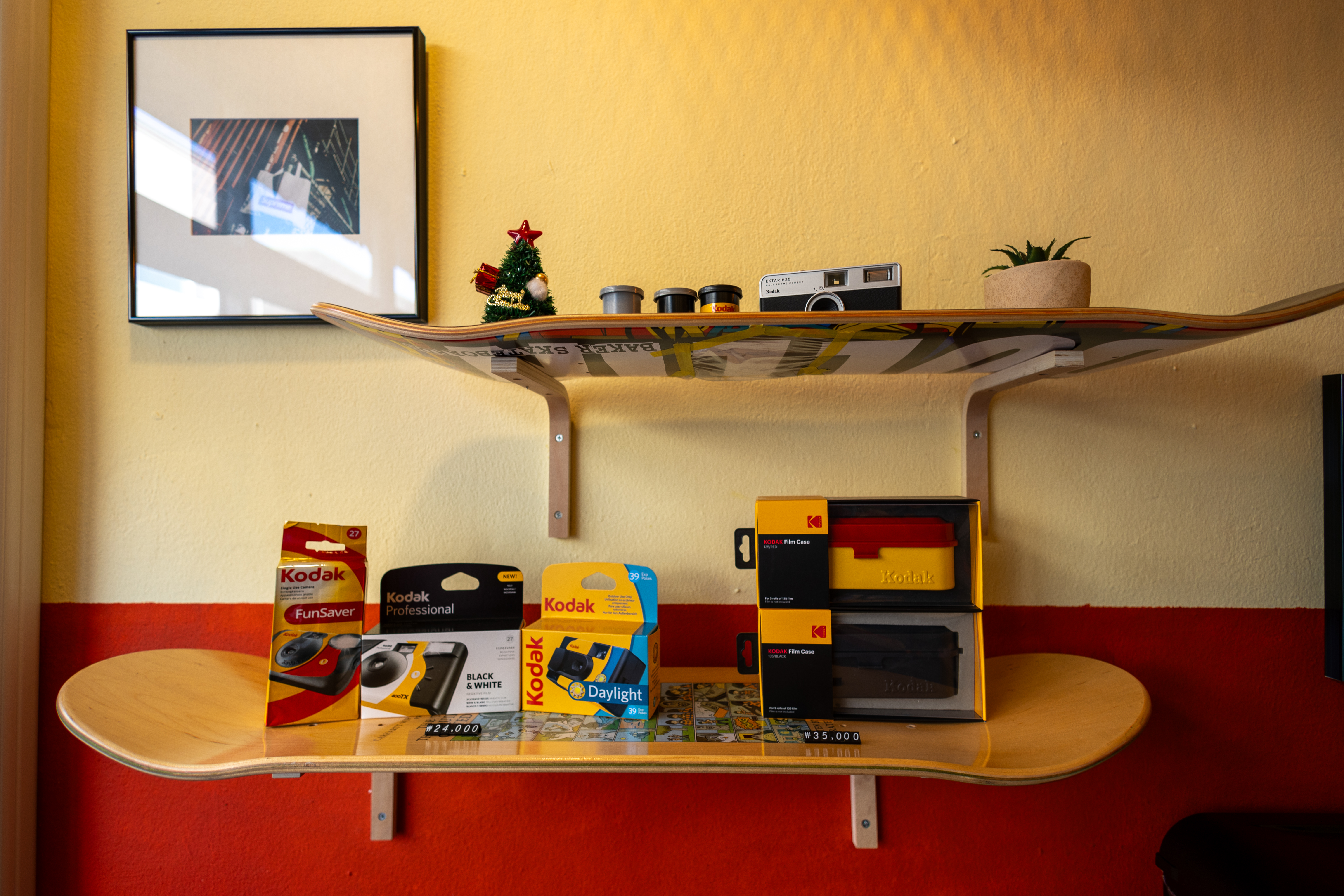 ํ์ชฝ์๋ ์ผํ์ฉ์นด๋ฉ๋ผ, ํ๋ฆ ๋ฑ์ ํ๋งคํ๊ธฐ๋ ํ๋ค.